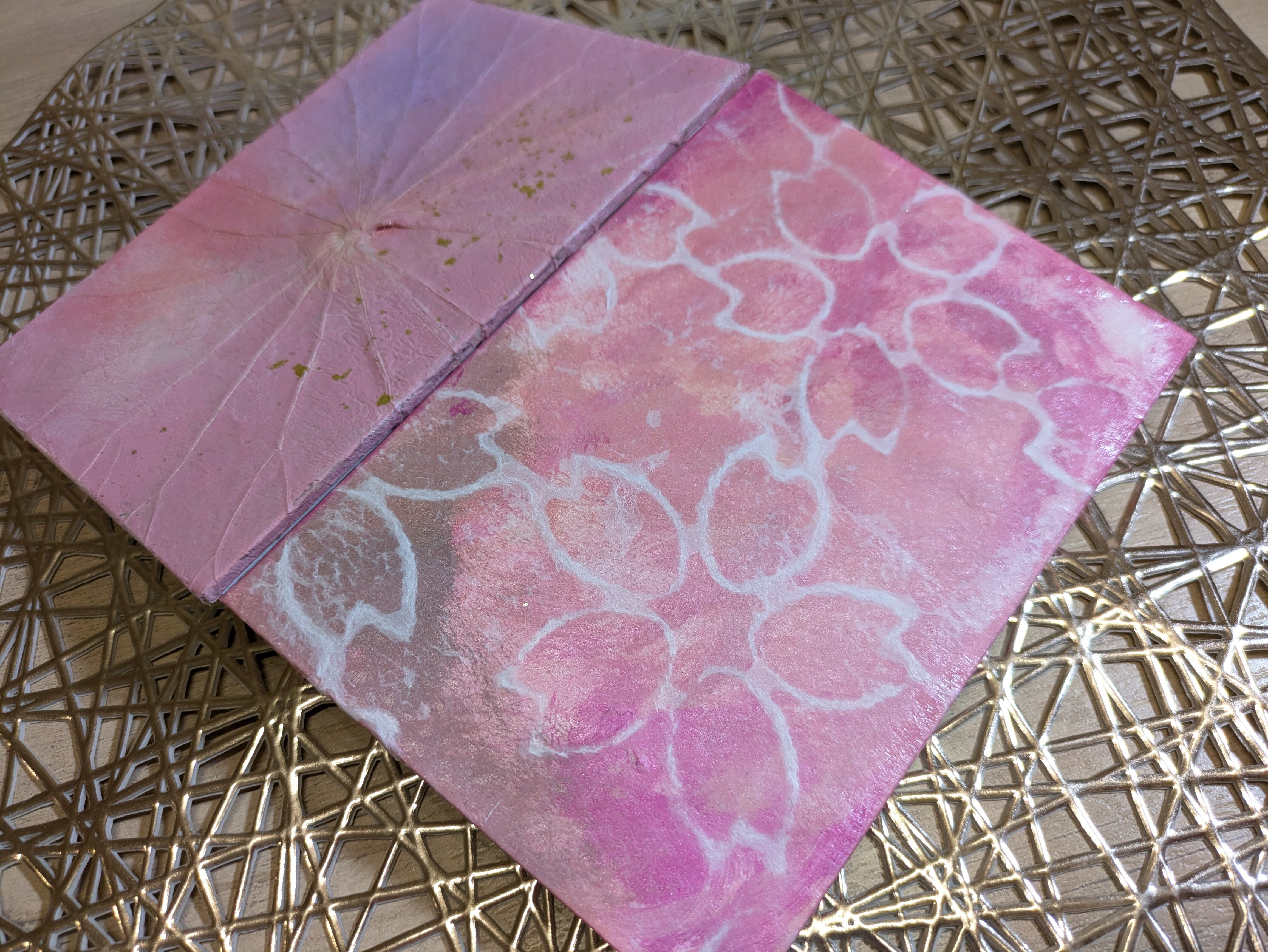 蓮の葉やボタニーペインティングに使用している植物素材は、時間とともに風合いが変化することがありますが、それも自然の美しさとしてお楽しみください。